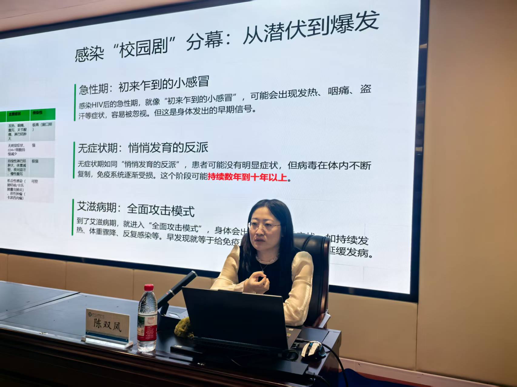 讲座现场,陈双凤主任凭借其深厚的专业知识和丰富的临床经验,针对青年学生的身心特点,用通俗易懂的语言、生动形象的案例,深入浅出地讲解了“艾梅乙”这三种传染病的致病原理、传播途径、对个人、家庭及社会可能造成的危害,以及科学的预防措施和国家的相关防控政策。陈主任特别强调了树立正确健康观念、养成文明健康生活方式的重要性,引导同学们增强自我保护意识,消除对感染者的歧视,共同营造一个理解、关爱、和谐的健康校园环境。